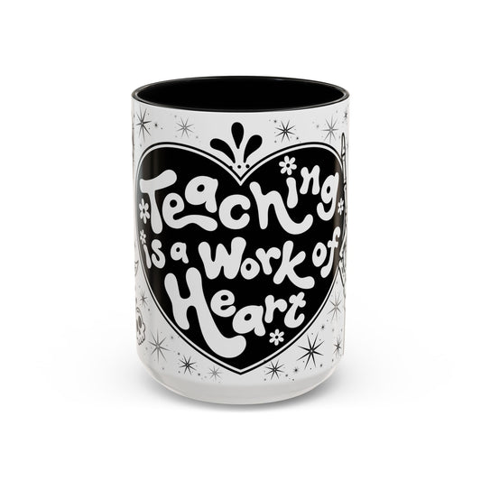 Teaching is a Work of Heart Coffee Mug - Black & White Accent Mug for Educators