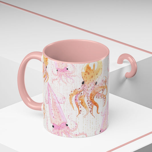 Whimsical Octopus & Squid Accent Coffee Mug - 11 & 15oz - Perfect for Sea Lovers
