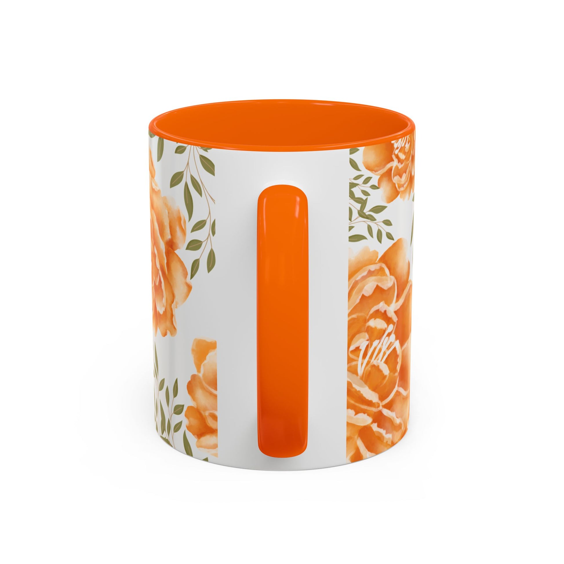 Floral Accent Coffee Mug - Elegant Orange Floral Design (11oz, 15oz)