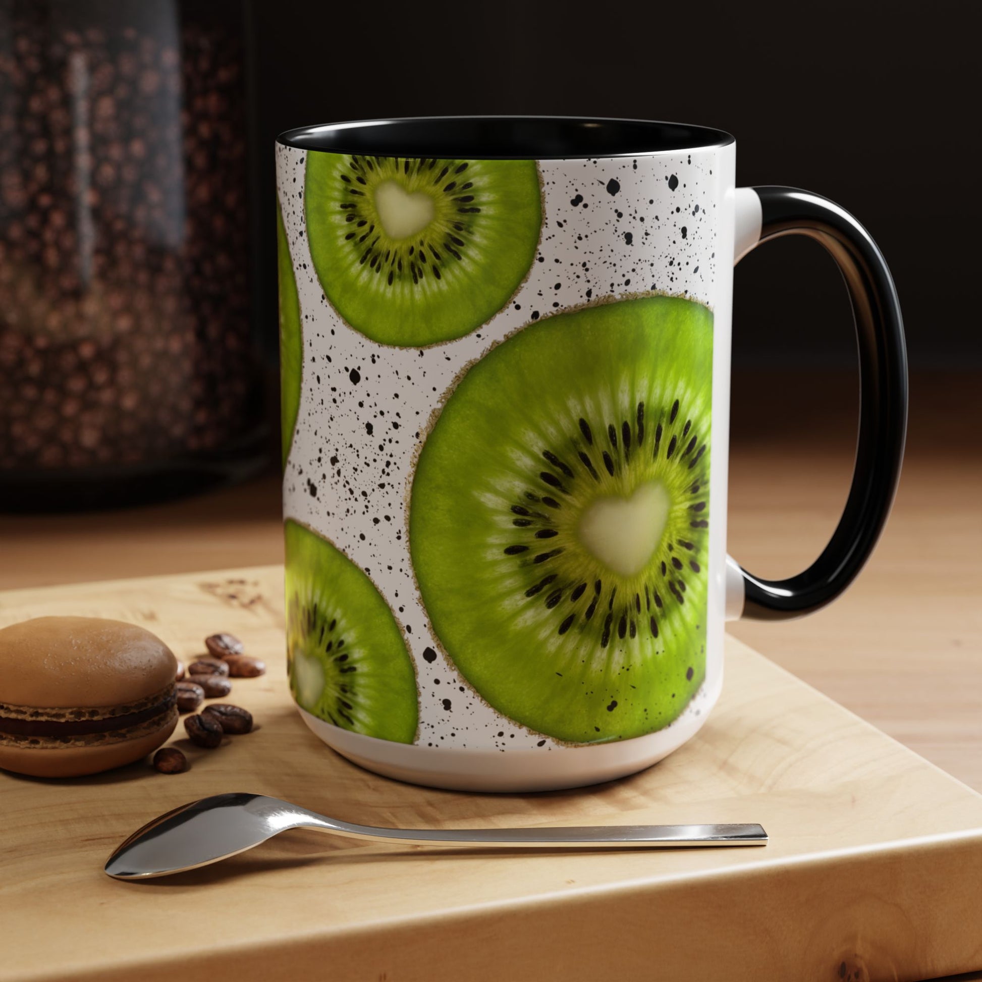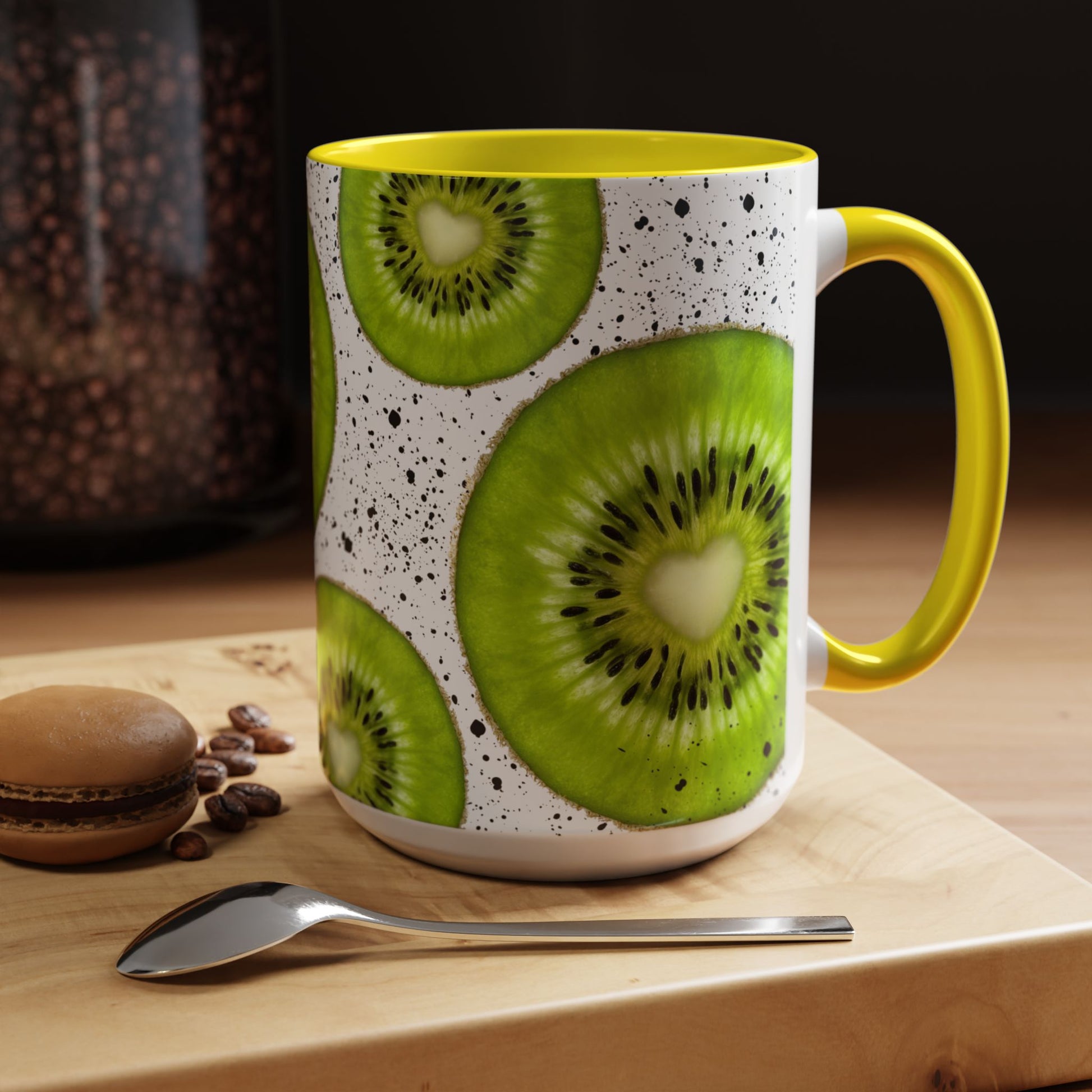 Enjoy your favorite beverage in style with this vibrant Accent Coffee Mug. The lively design featuring kiwi slices adds a fun touch to your morning routine or afternoon coffee breaks. Perfect for anyone who loves unique kitchenware, this mug is an ideal gift for coffee lovers, fruit enthusiasts, or those looking to brighten up their day. It's suitable for any occasion—from birthdays to holiday celebrations. Whether you're hosting a brunch or simply enjoying a quiet moment, this mug will elevate your experience with its eye-catching colors and glossy finish.